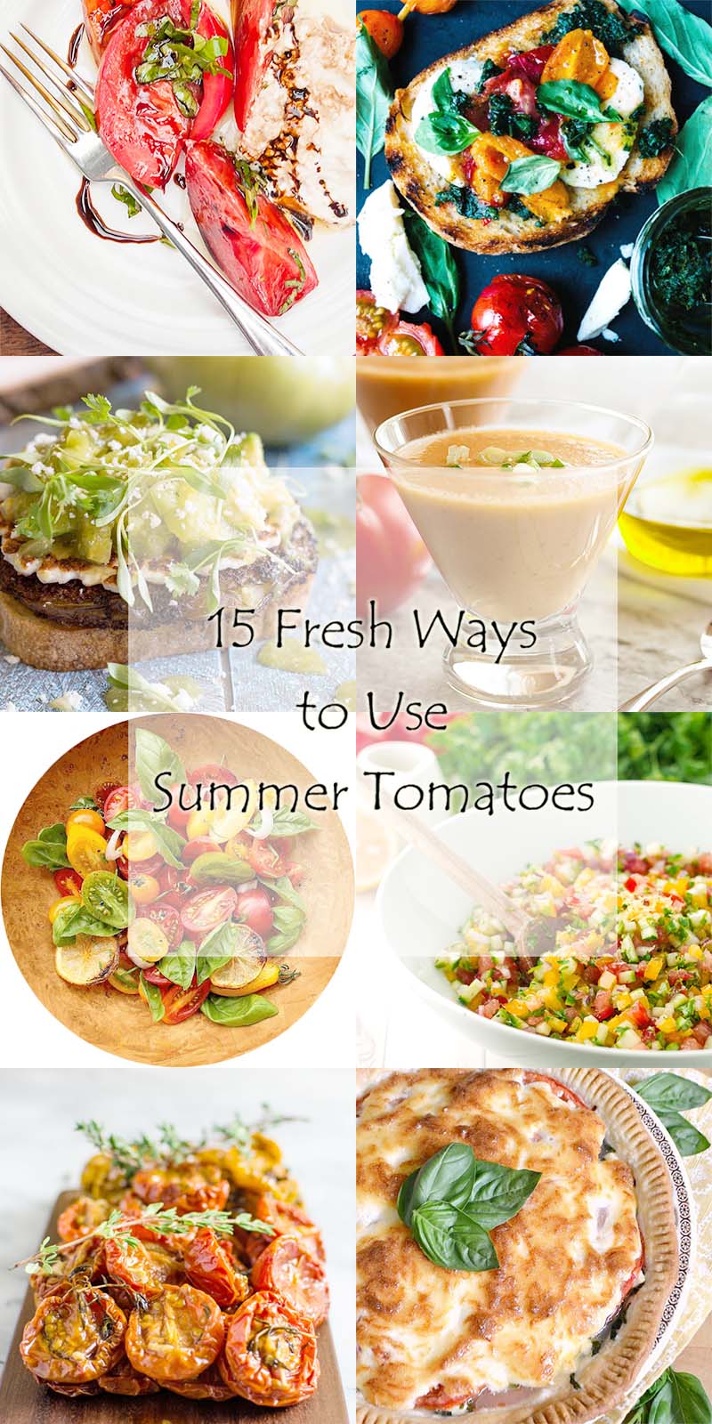 We’re starting off this week of summer roundups on the blog with tomato recipes! There is something about fresh, ripe tomatoes which gets food bloggers everywhere thinking of recipes. Probably because we spend a lot of time thinking about what to eat. And can you blame us when tomatoes are in season?