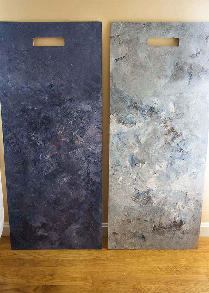 So, while my daughter was doing her summer internship here and working off a phone repair debt, I thought she could make me some backdrops. I found a great DIY photography backdrop tutorial, had her read up on it, we went together to pick out sample sized paints, and here we have it! Two new beautiful backdrops.