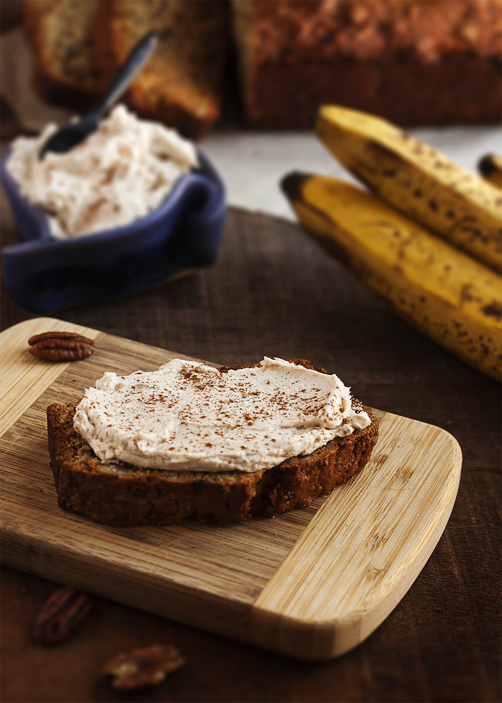 I’m always throwing out overripe bananas. The next time, I need to make this banana bread instead. I love the addition of bourbon, and that spiced cream cheese sounds divine!