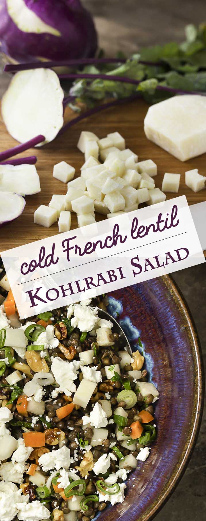 I looked around in my books and on-line for ideas, but nothing was really hitting me until I went through my archives and came across my Lentil and Brown Rice Salad. The moment I thought about earthy French lentils tossed with kohlrabi in a salad, I knew I had it.