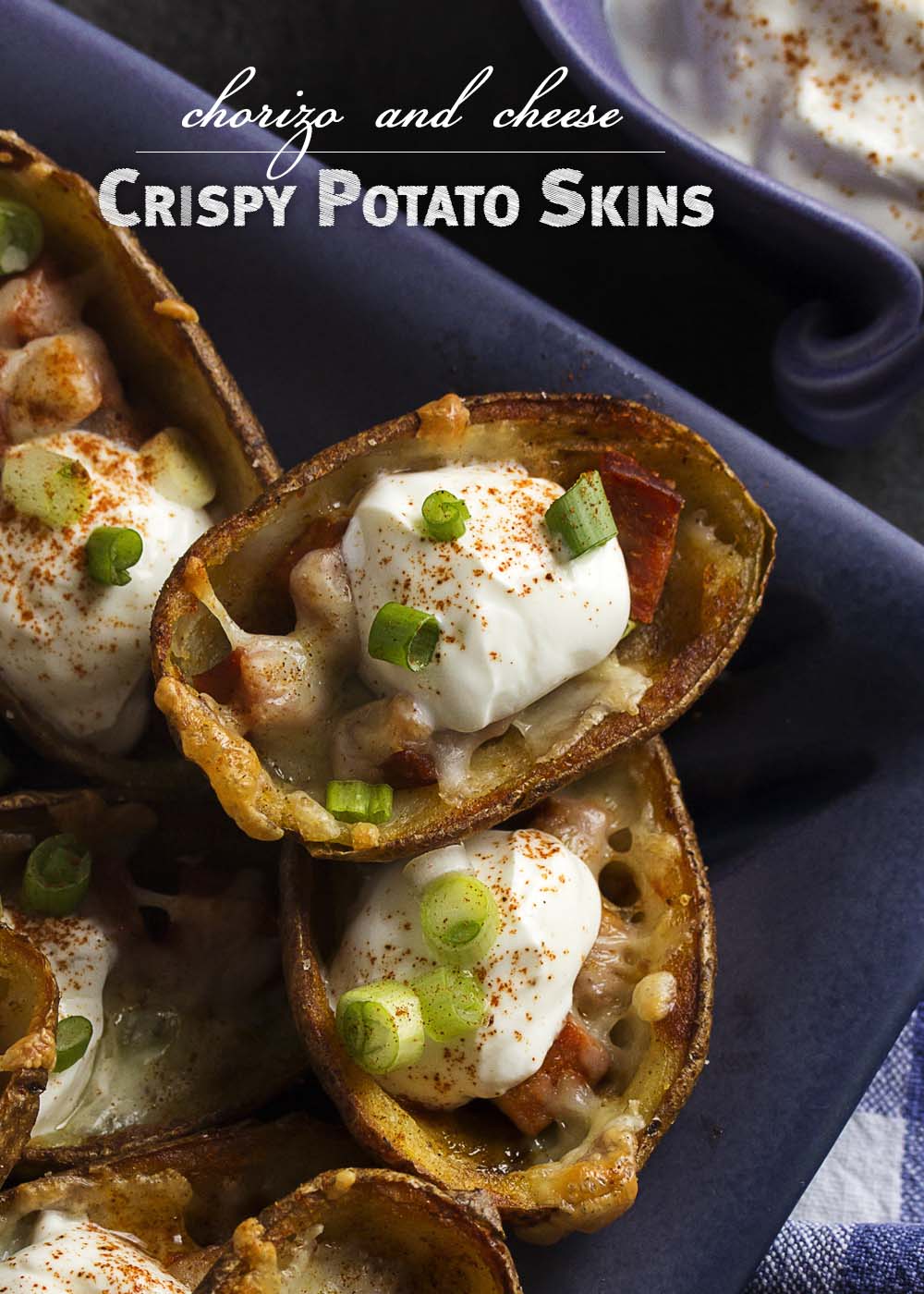 Put all those together and what do you have? Crispy Potato Skins filled with chorizo and cheese!