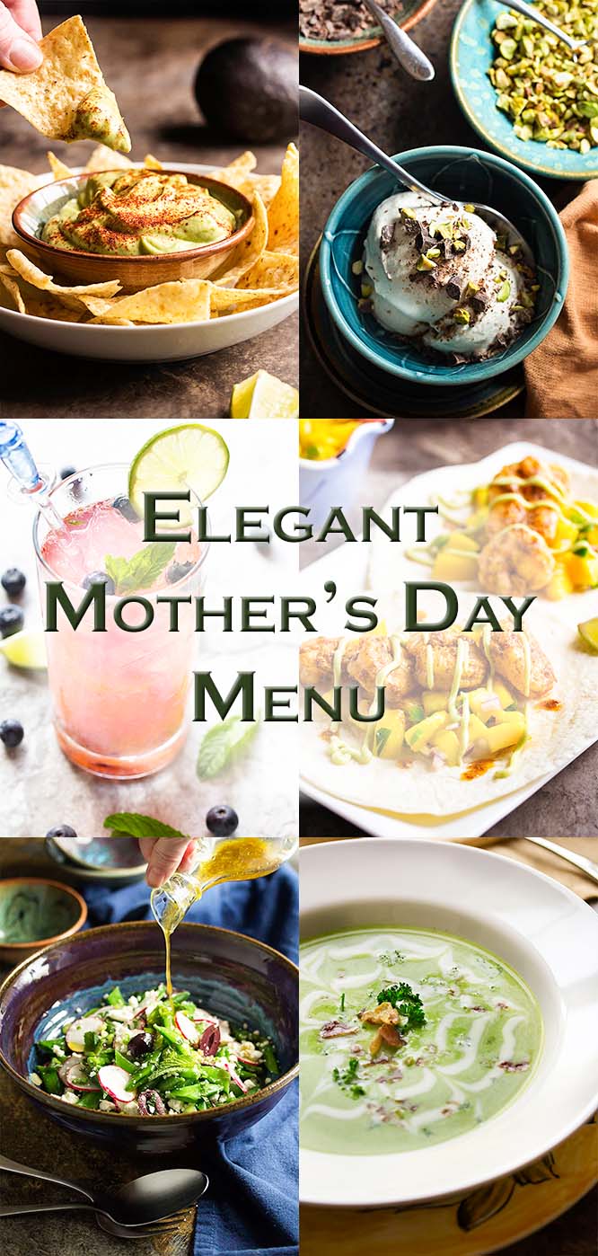 This year for Mother’s Day, how about a Mother’s Day Lunch Menu? I have a selection of elegant, lighter recipes (and a great dessert!) which are sure to please mom, while also incorporating lots of great, seasonal fruits and vegetables.