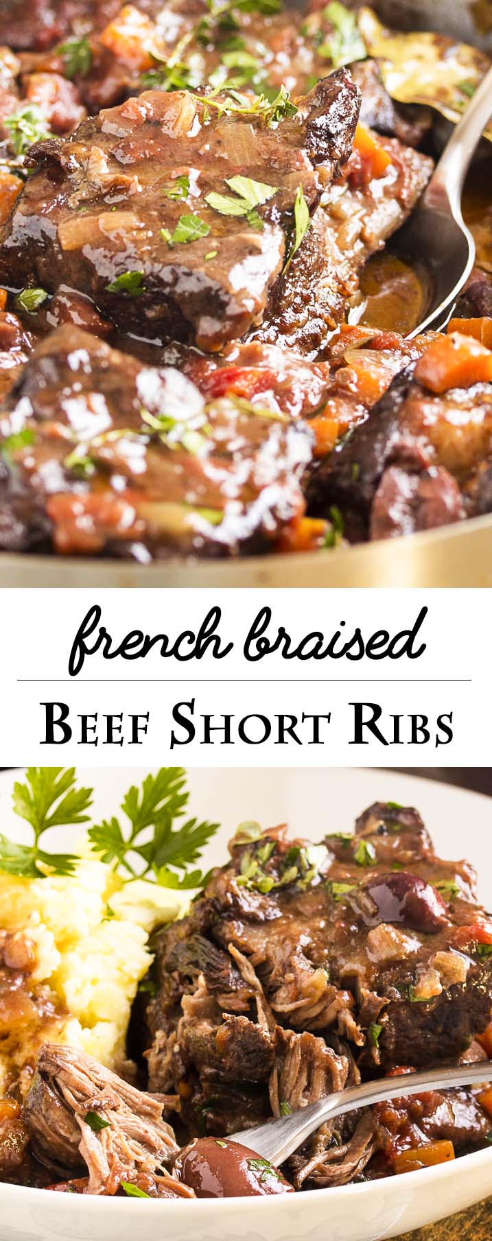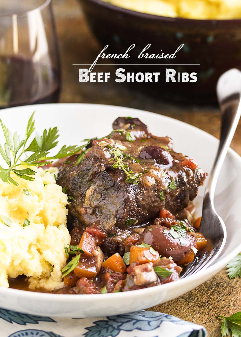 Braised short ribs is one of my favorite dinners to make once the weather starts to cool. I have all sorts of recipes for this delicious cut of beef that I pull out on rainy days and snowy days and just because it’s cold and I want some comfort food days! This recipe for French short ribs is one I’ve been making for many years and will be for many years to come.