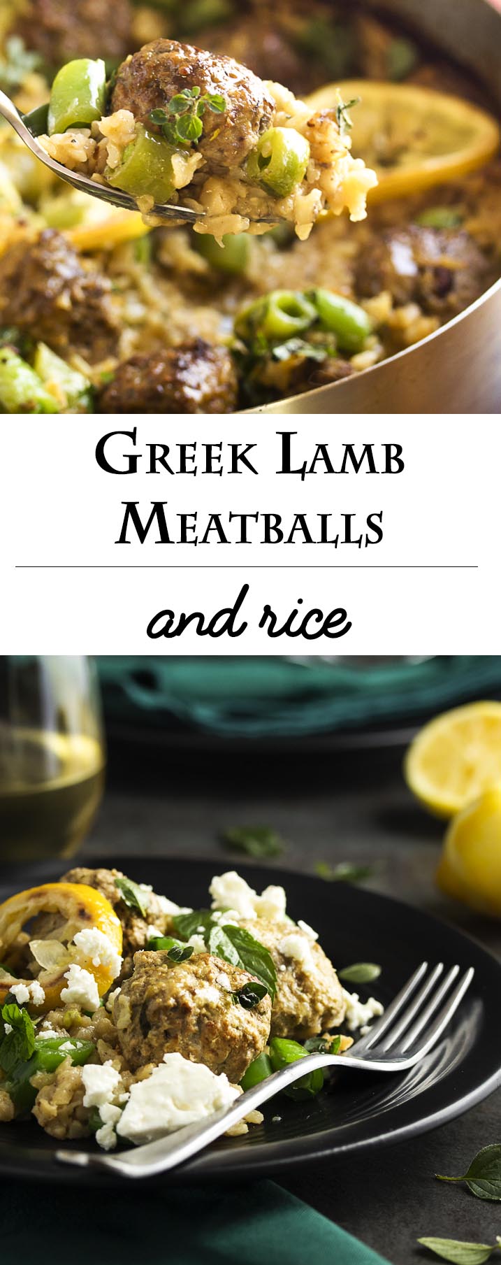 Greek Lamb Meatballs and Rice - One Pot Meal