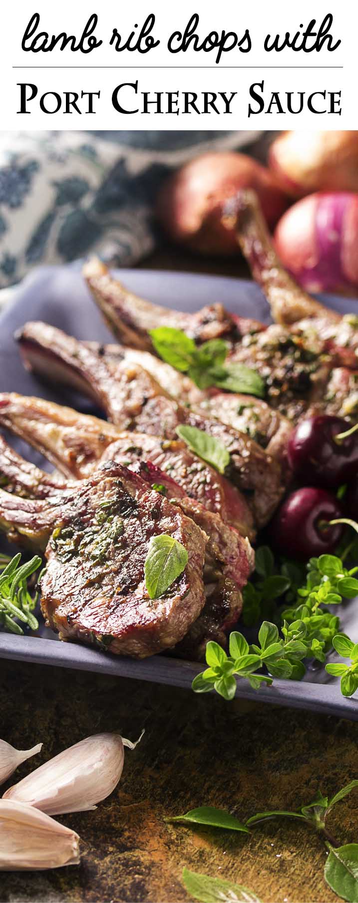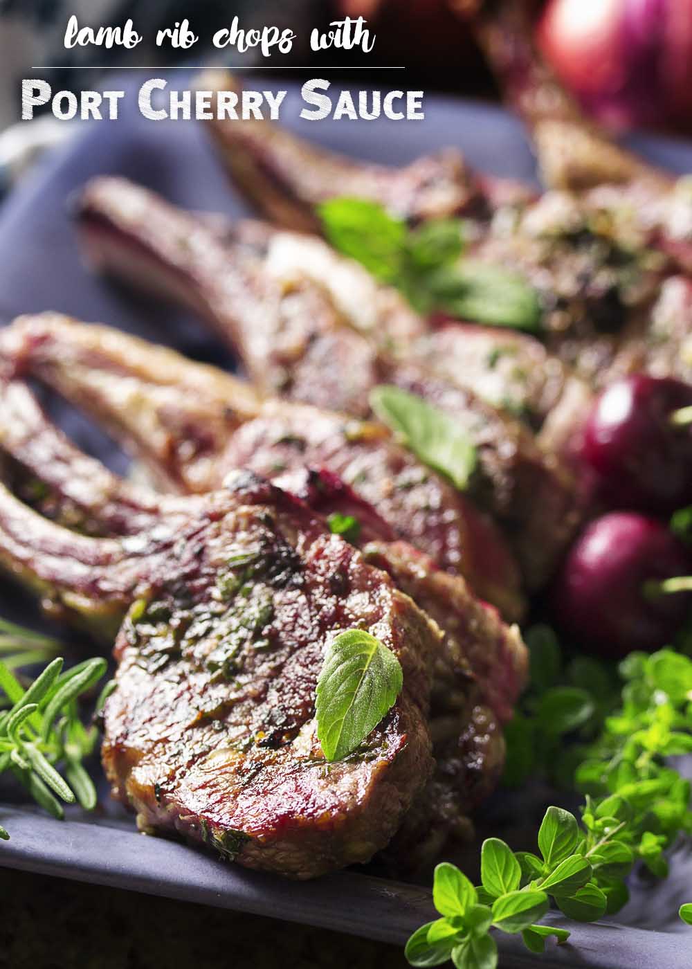 Tender lamb rib chops are rubbed with fresh herbs and paired with tart-sweet cherry port sauce in this quick date night dinner! Fresh cherries are out in abundance, so fire up the grill because this a great recipe for your Saturday night.
