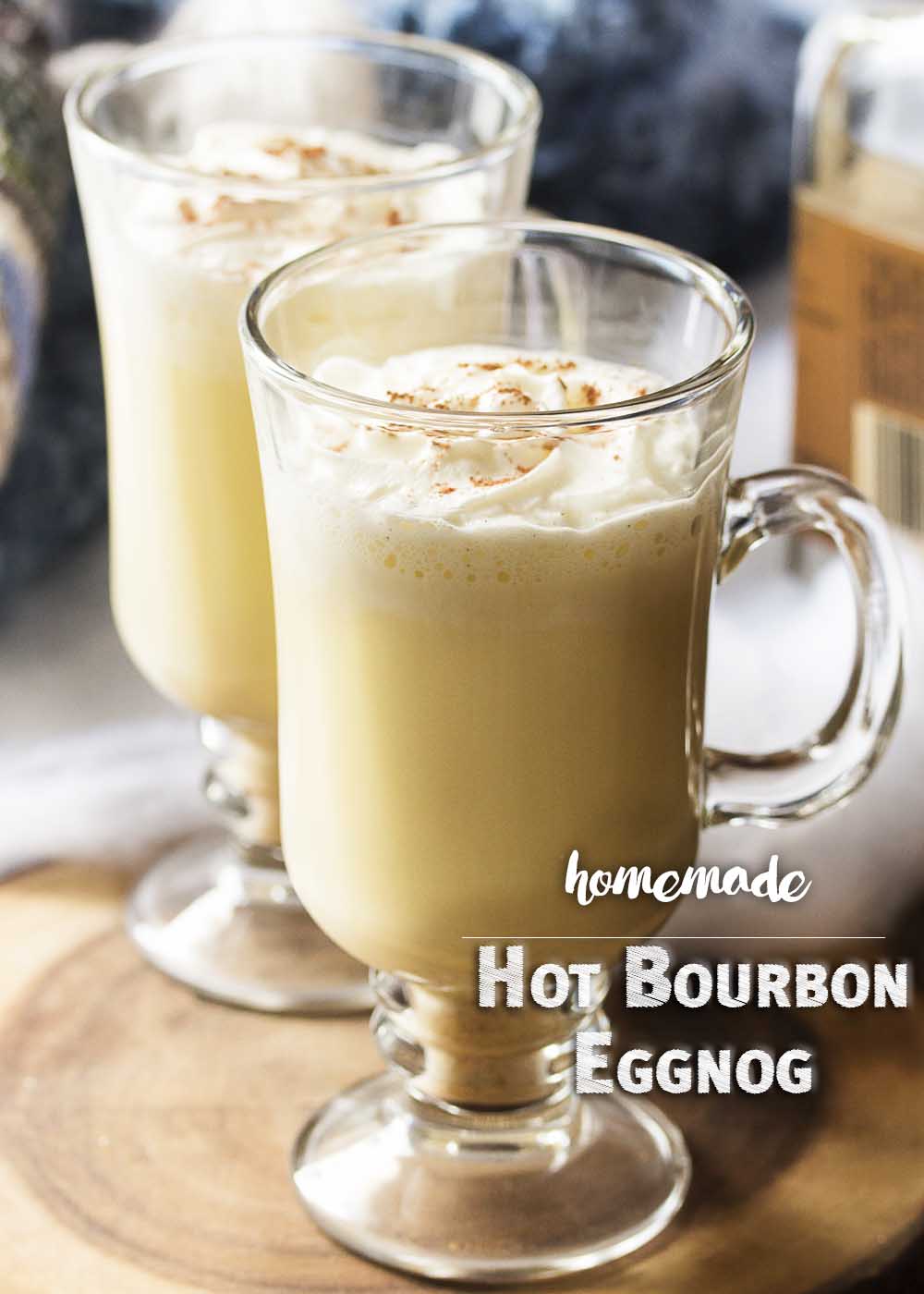 Homemade eggnog is seriously good and easy AND so much better than store bought! Drink it fresh off the stove and spiked to make hot bourbon eggnog and you’ll be looking forward to cold and snowy weather.