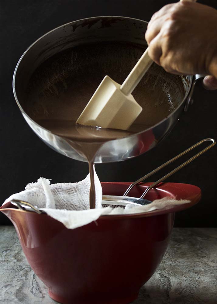 - Add the chopped chocolate directly to the milk and stir to melt. This method wasn’t bad so long as you strained it well! However, I thought I could get it even smoother.
