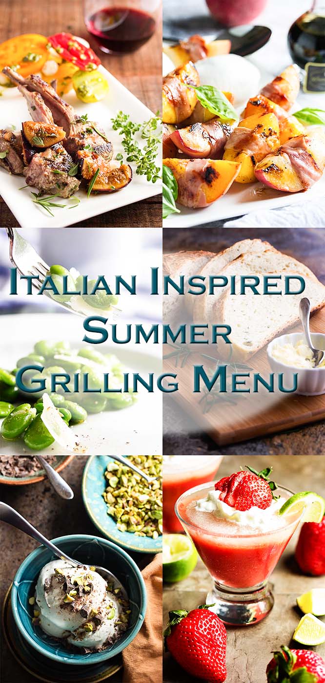 When summer heat is in full swing around here, I’m looking for easy recipes featuring the best of summer fresh produce and don’t make me stand in front of a hot stove in the evening! Summer is time for starting up the grill and I have for you today a great summer grilling menu with a tasty Italian theme.
