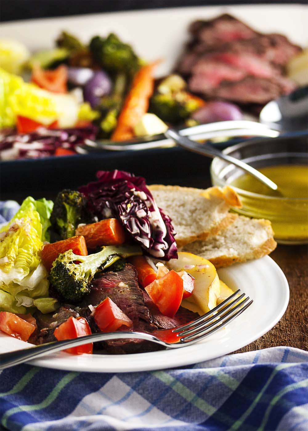 So I whipped up a quick shallot vinaigrette, pulled out the leftover roasted vegetables, sliced some of the leftover meat, and grabbed what ever salad fixings I had on hand. As I ate this yummy roast beef salad, I knew I needed to make this again and share it with all of you! It was too tasty to keep to myself.