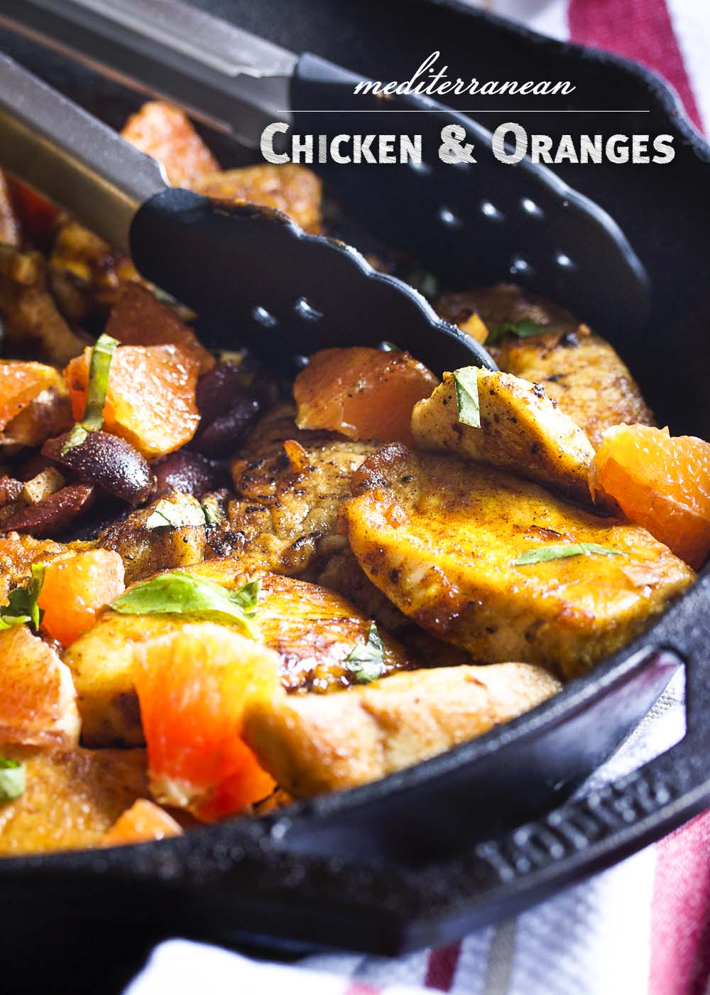 I’ve been working on a quick, Mediterranean chicken skillet with olives and oranges for a while now, but it wasn’t quite right. The chicken was tough. The sauce was bitter. The oranges were mushy! (Don’t simmer them! Learn from my mistakes. 🙂 )