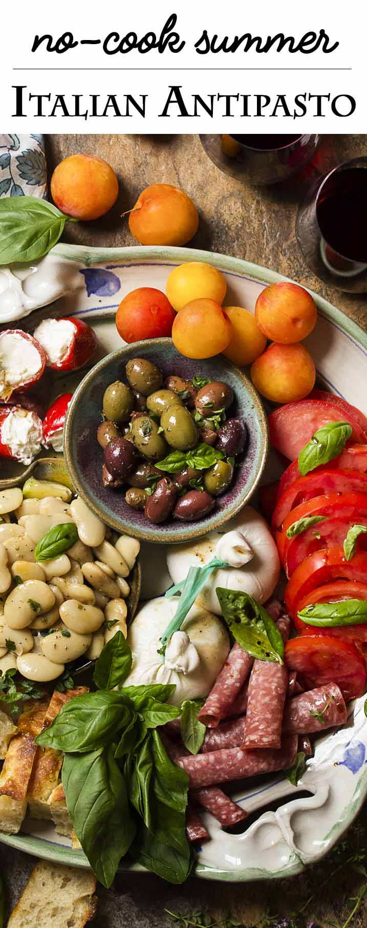 There you have it! My favorite no-cook cold antipasto. All set out on a platter for everyone to pick and choose and take what they want.
