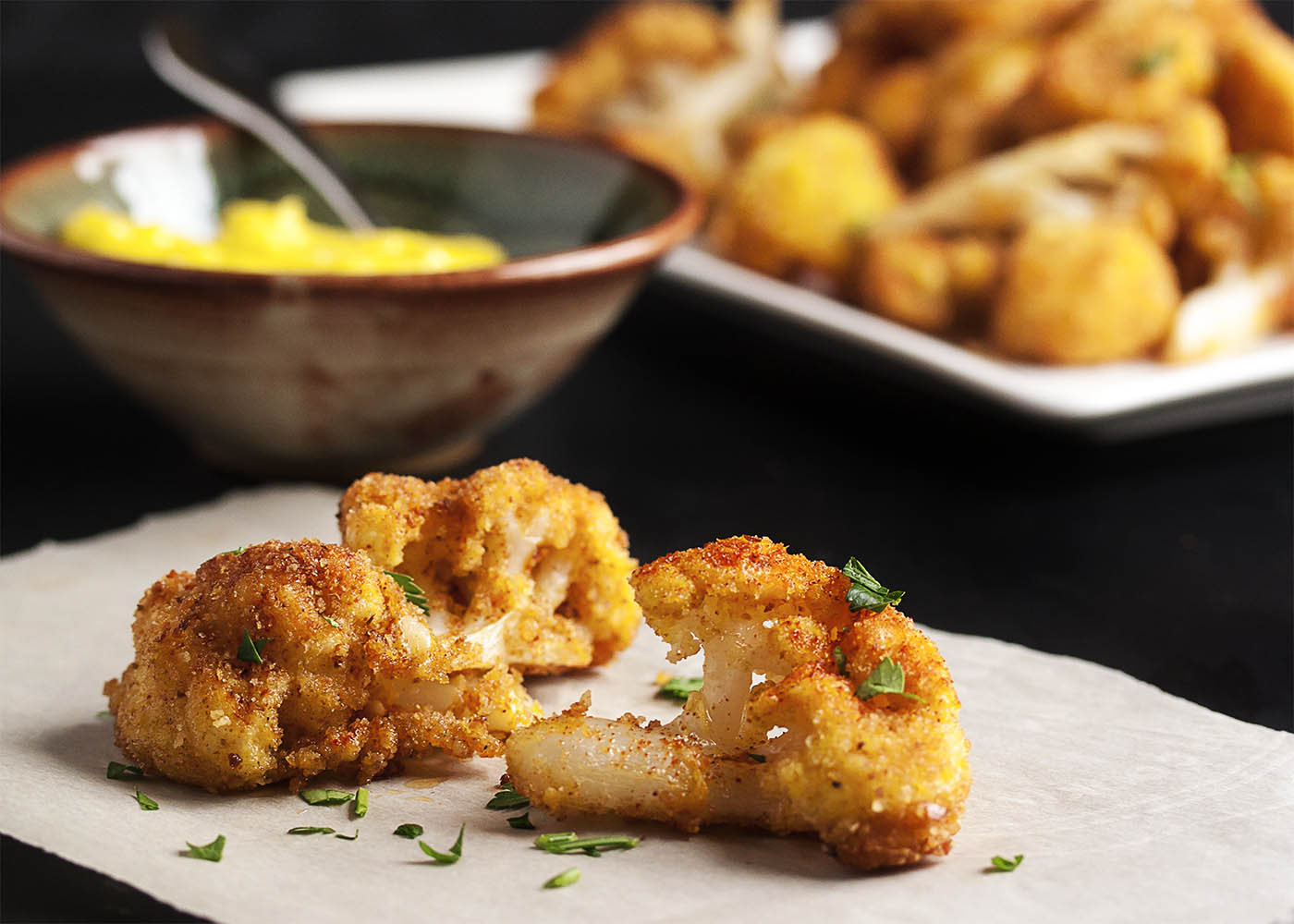 - To coat the cauliflower florets, dip them into the egg, allowing most of the egg to drip off - you don't want much egg on the cauliflower. Then roll them in the bread crumbs. Don't worry if the cauliflower is only partially covered. What you are looking for is a thin coating over much of the cauliflower.