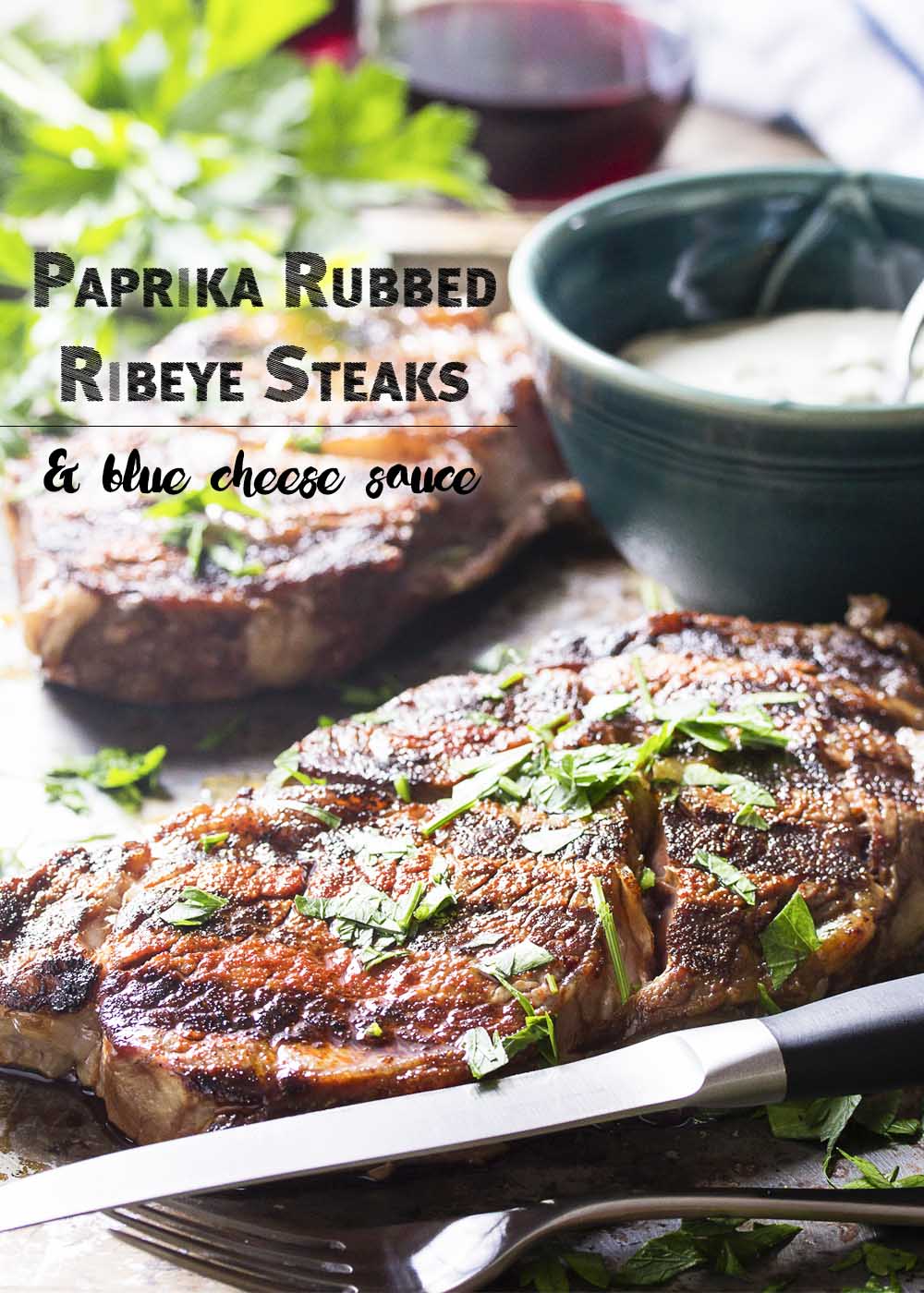 - 2 1-inch thick ribeye steaks, each 10-12 oz