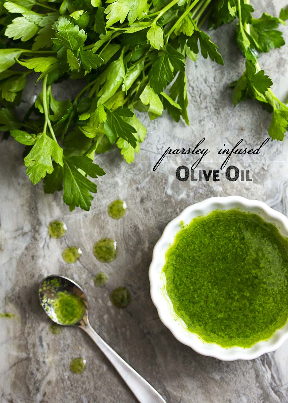 Like my Paprika Infused Olive Oil, this parsley oil is fast to make while adding so much flavor to foods.