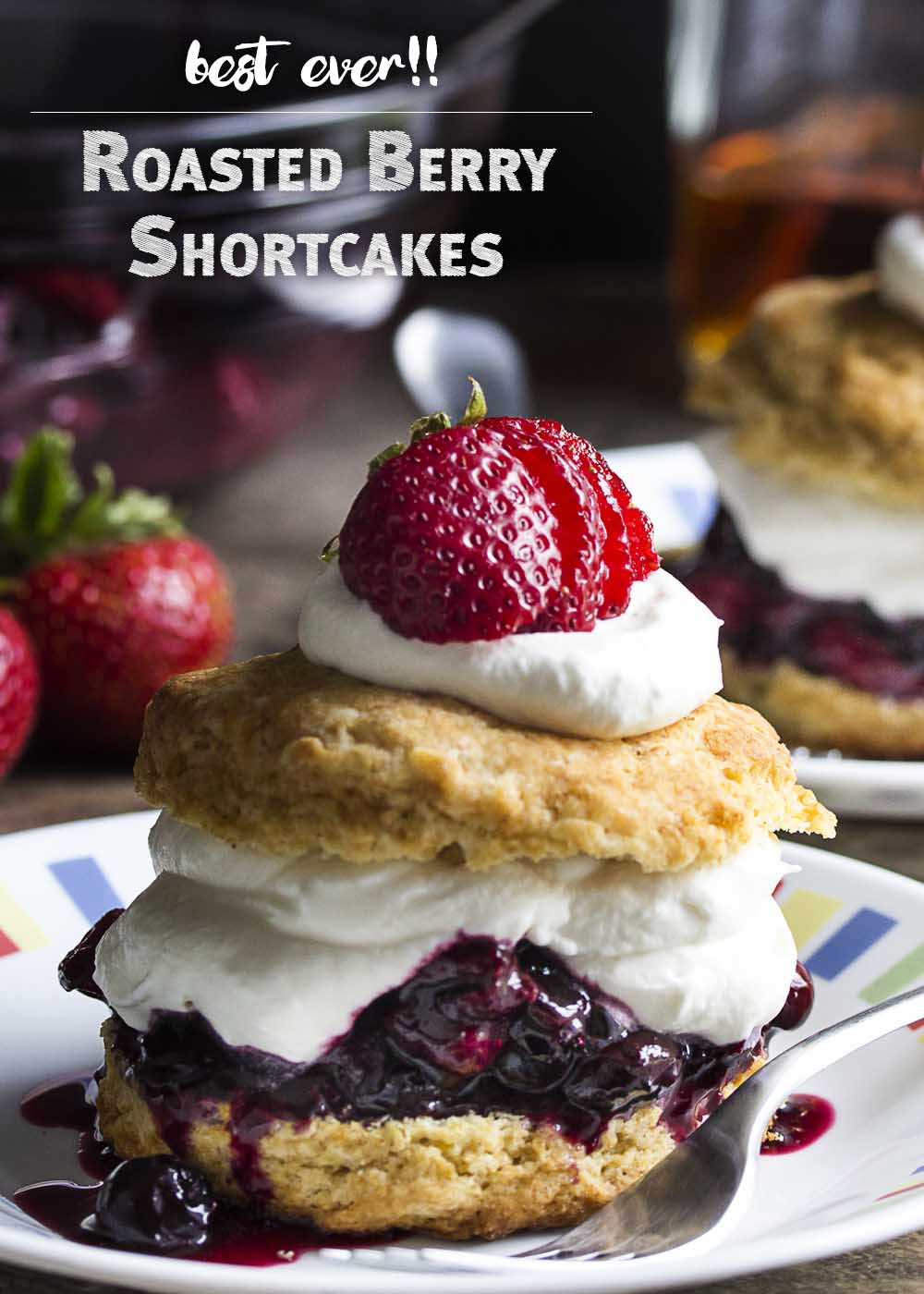There you have it! Roasted berries, cinnamon spiced shortcakes, and bourbon whipped cream! Your strawberry shortcake just got brought up to the next level and, personally, I like here. I’m going to be making roasted berry shortcakes every year from now on.