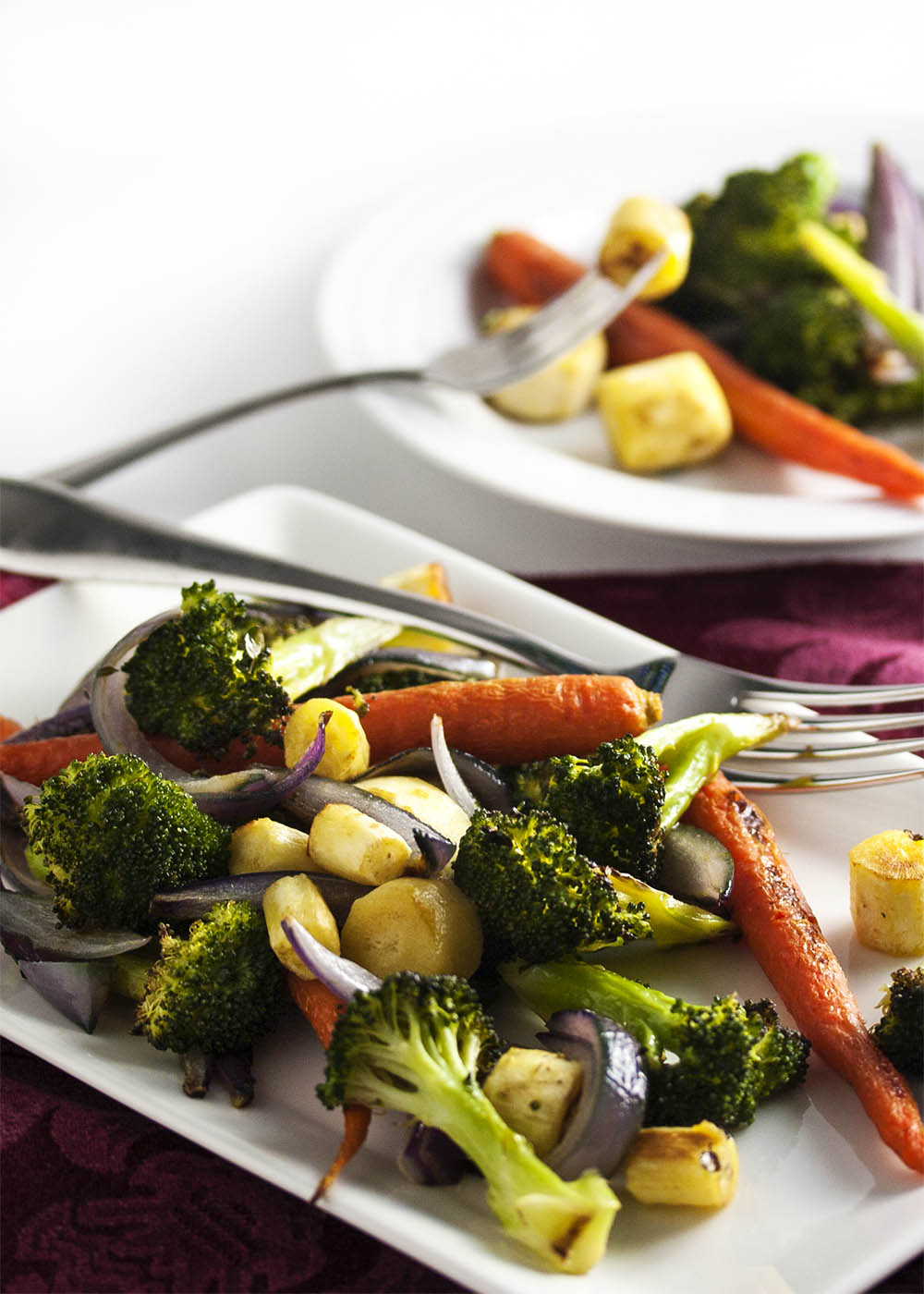 I hesitated to post this recipe since it’s so simple! But it’s also one of my favorite ways to have vegetables, and I make a version of these roasted vegetables almost weekly, so I decided it was still worth sharing. I think that once you try this recipe, if it isn’t already your favorite go-to side dish, it will be soon.