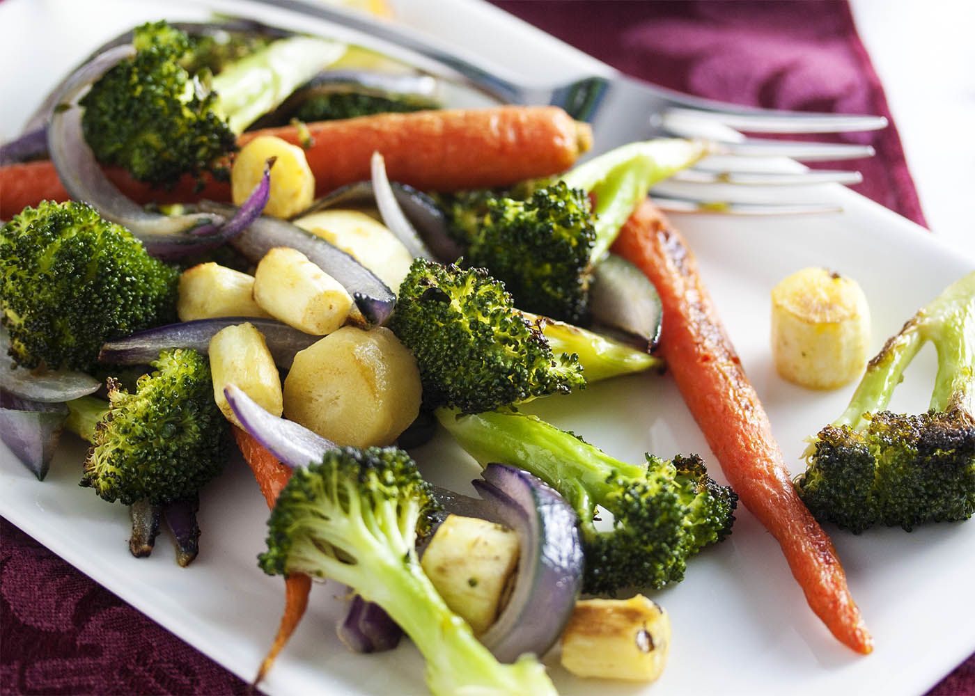 - Toss carrots, parsnips, broccoli, and onion together in a large bowl. Add olive oil, thyme, and salt. Mix well. Put vegetables in a roasting pan and roast for 10 minutes. Stir and roast for 5 more minutes. Transfer roasted vegetables to a serving dish.