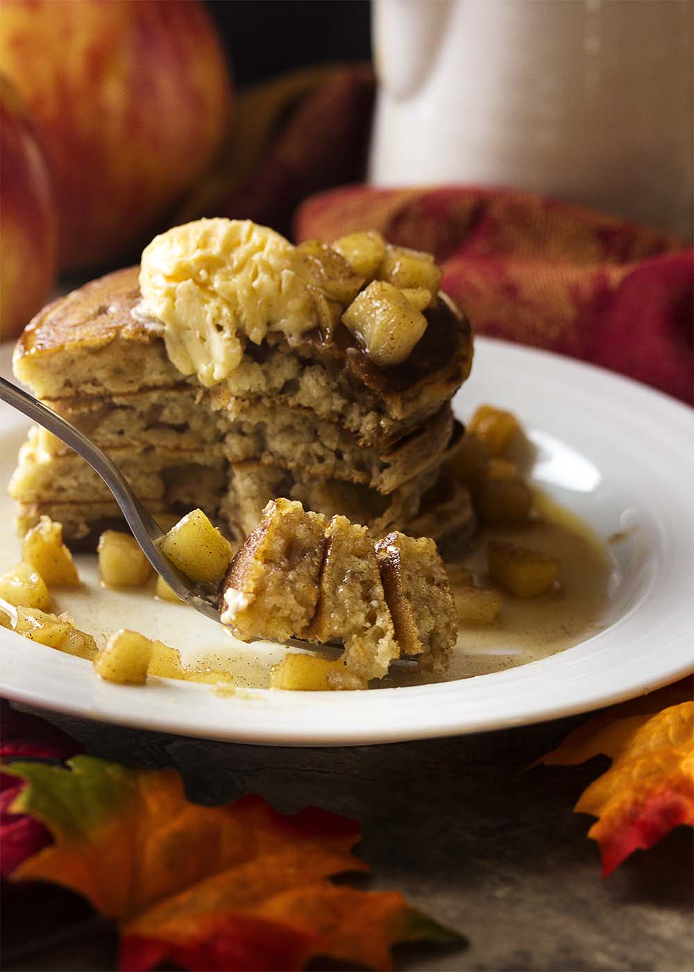 The fluffy pancakes, the spiced apples, the warm maple syrup—they make one fantastic breakfast! I just want to take a bite off of that fork and then work my way over to the stack behind it! Happy early birthday to your daughter! Have fun with the Rockettes and have a wonderful time in Bonaire!!